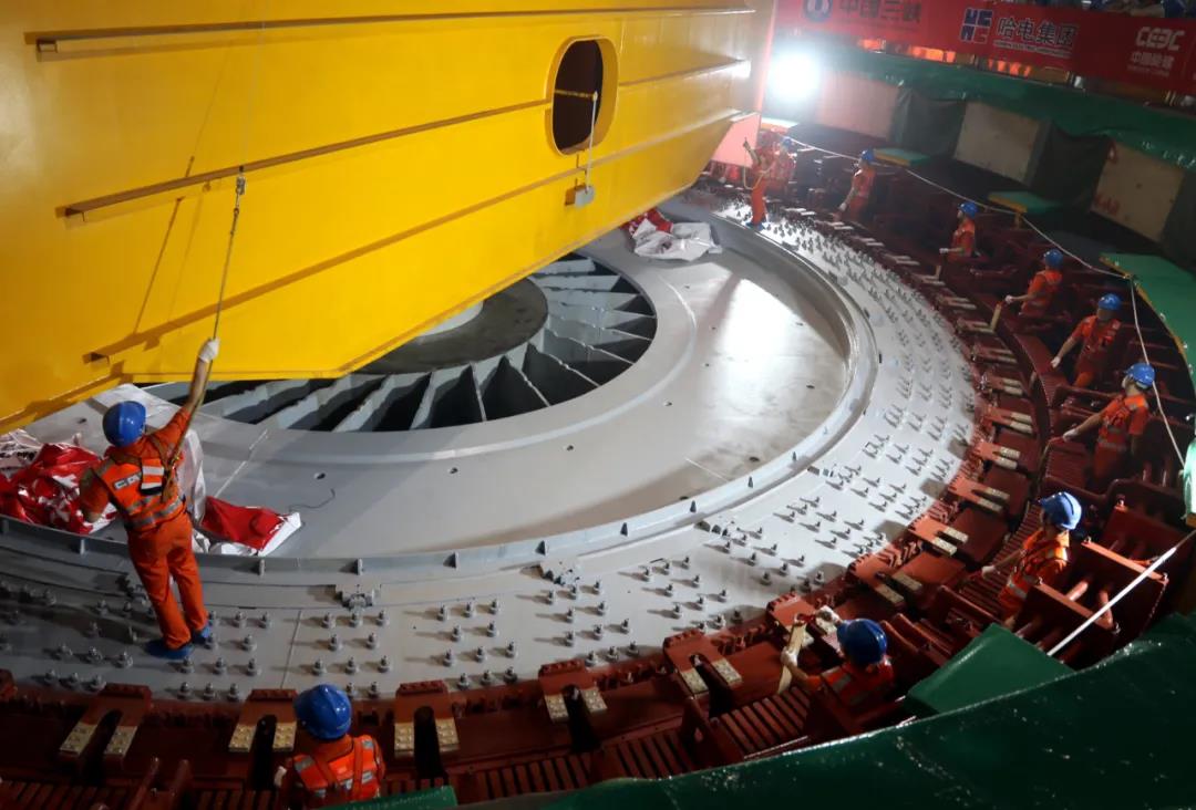 白鹤滩右岸全部8台百万千瓦机组的研制,是哈电集团电机公司继成功研制三峡、溪洛渡、向家坝等巨型水电机组后,又一次凭借一流的技术实力、超强的制造质量、优异的服务水平,承担的又一世界级的超级工程装备研制任务。经过不懈努力,哈电集团陆续突破了产品研发、设计、制造等重大难题,先后成功制造了世界首台精品座环、首台精品导水机构、首台精品长短叶片转轮等重要部件,持续推动世界水电装备制造迈入了百万千瓦机组的“无人区”。