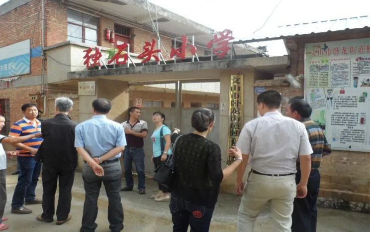 2015年7月,哈电集团选派的挂职文山市市长助理赵鑫对小学校进行实地调研。