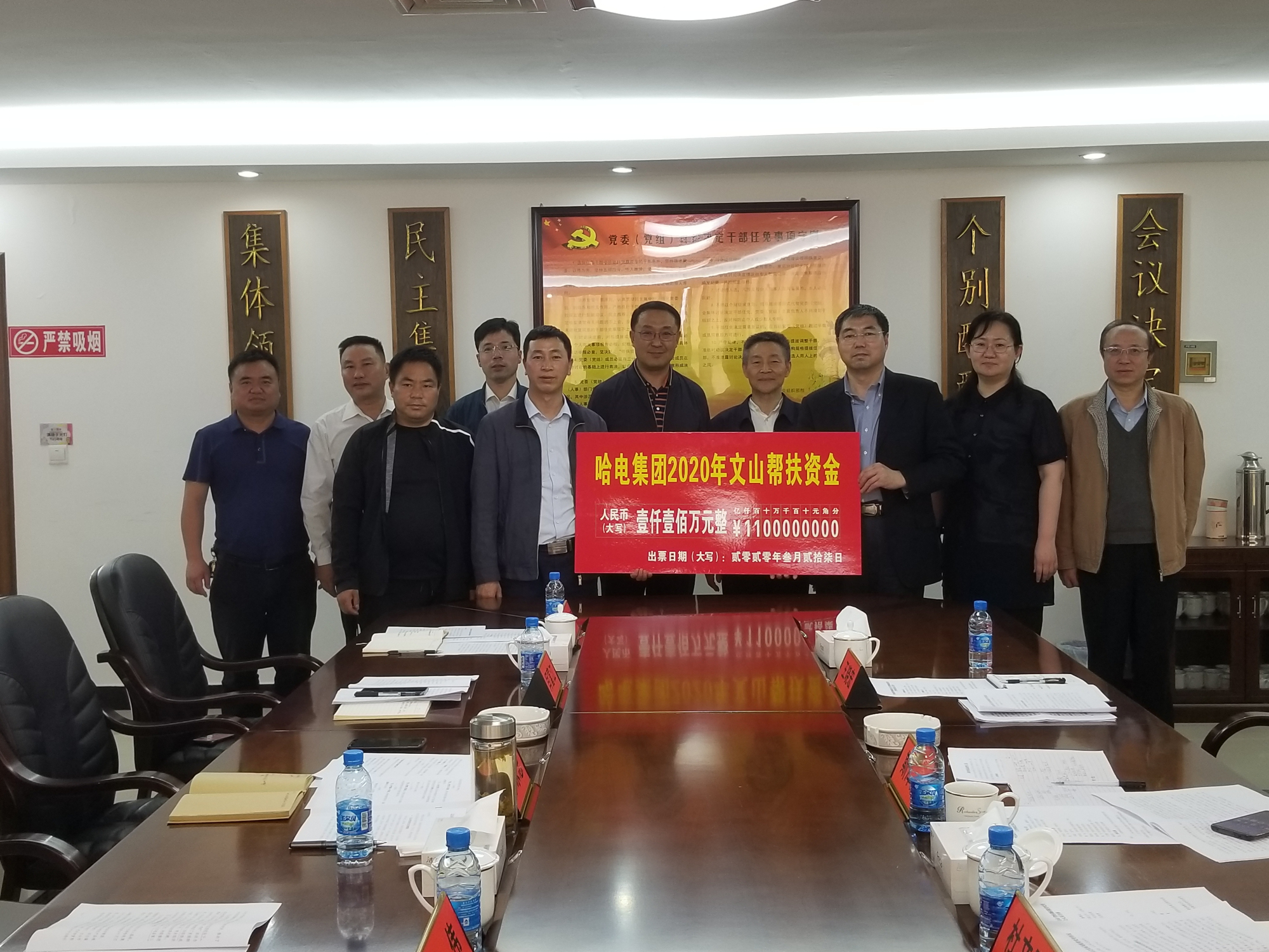 2019年5月,哈电集团党委副书记、总经理吴伟章一行对文山市脱贫攻坚工作提出意见建议,并捐赠1000万元定点扶贫资金。