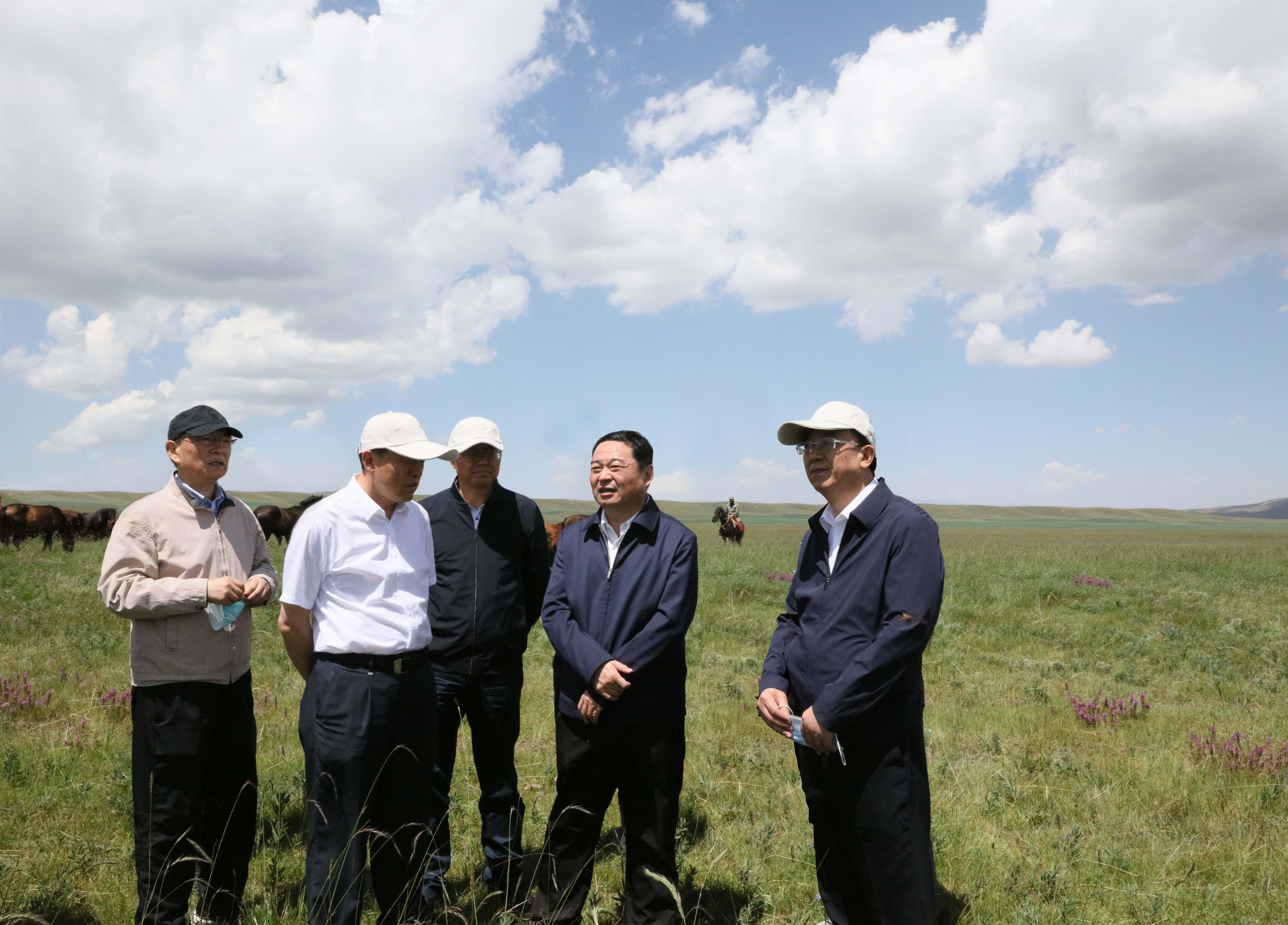 郝鹏来到中国农发集团所属山丹马场,深入脱毒马铃薯制种基地、高效节水灌溉基地、马产业基地实地察看天然草场保护与利用、马产业发展等情况,参观场史馆,走访异地搬迁安置到保障性住房的家庭,并在马产业基地主持召开座谈会,认真听取马场在落实祁连山生态保护工作要求、实现可持续发展等方面的工作汇报。郝鹏对企业深入贯彻习近平生态文明思想,坚持绿色转型发展,多措并举加强生态环境保护,扎实改善职工生产生活条件给予充分肯定,要求企业始终牢记习近平总书记考察山丹马场时的殷切嘱托,坚持生态优先、保护第一,结合制定“十四五”规划,建立完善央地合作长效机制,坚决扛起当代“牧马人”的职责使命,在坚决做好生态保护的前提下,统筹处理好生态保护与产业发展的关系,加快转变生产经营方式,切实把马场保护好、建设好、发展好,努力建成祁连山生态环境保护的典范。