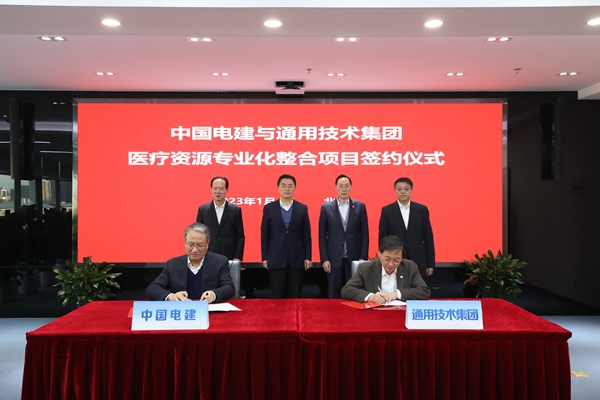1月10日,中国电建与通用技术集团医疗资源专业化整合项目签约仪式在京举行,国资委党委委员、副主任翁杰明出席并见证签约。
