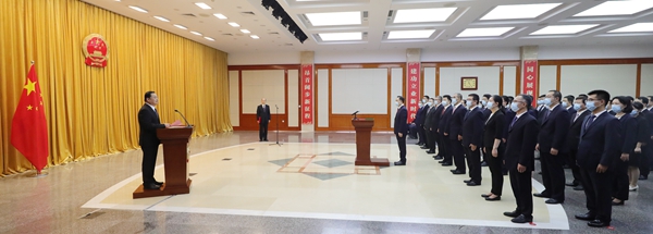 根据《中华人民共和国宪法》和《国务院及其各部门任命的国家工作人员宪法宣誓组织办法》,国资委组织2022年1月以来新提任的国资委机关局处级干部依法进行宪法宣誓。