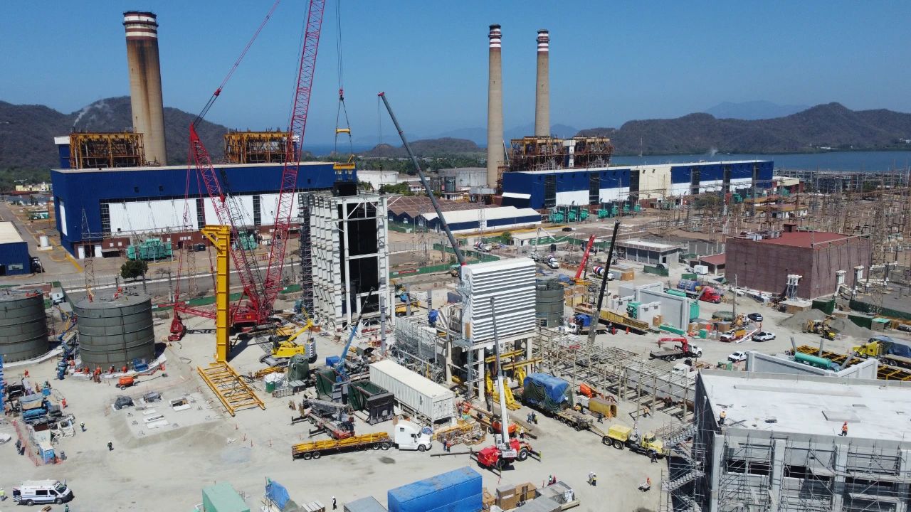 墨西哥当地时间3月26日8时58分,由哈电国际承建的墨西哥曼萨尼约三期350MW联合循环项目顺利完成余热锅炉模块的首吊就位,标志着项目安装施工取得重大进展,截至目前3台机组模块已经吊装就位。