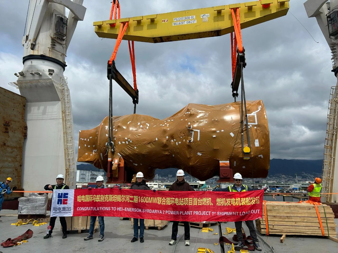 4月5日,由哈电国际承建的乌兹别克斯坦锡尔河二期1600MW联合循环项目电站项目首台燃机、燃机发电机等核心设备在日本神户港顺利装船发运,标志着项目设备发运工作取得重大进展。